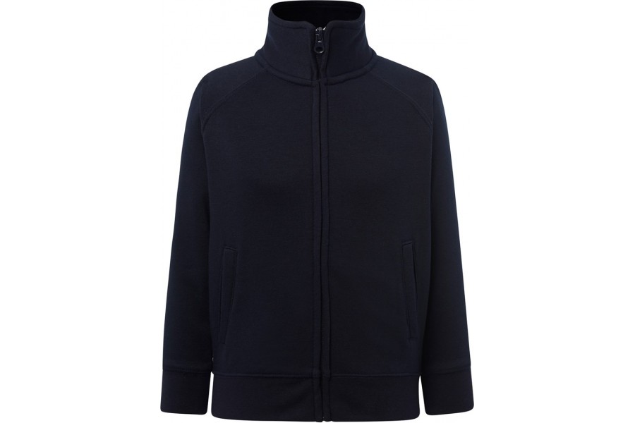 Bluza Treningowa Dziecięca Full Zip to wygodna i praktyczna bluza unisex dla dzieci, wyposażona w pełny zakryty zamek błyskawiczny oraz wysoki kołnierz, który zapewnia dodatkową ochronę przed chłodem. Wykonana z trwałej mieszanki bawełny i poliestru z recyklingu o gramaturze około 290 g/m², gwarantuje komfort cieplny i długotrwałe użytkowanie. Dzięki bocznym kieszeniom, elastycznym ściągaczom i klasycznemu fasonowi bluza świetnie sprawdza się w szkole, na spacerach, podczas zabawy oraz aktywności fizycznej. Dostępna w ośmiu kolorach i rozmiarach od 1/2 roku do 12/14 lat.