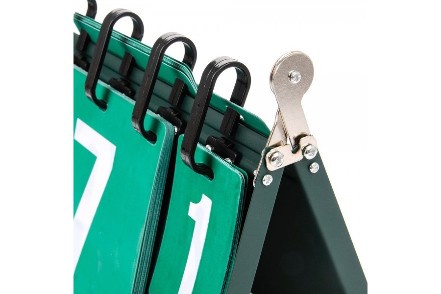 Tablica wyników Meteor Nr 1-30 to poręczne liczydło punktów do gier zespołowych i treningów. Zielone karty z kontrastową, białą numeracją ułatwiają szybkie odczytanie wyniku, a stabilna metalowa podstawa dobrze sprawdza się przy intensywnym użytkowaniu. Ten licznik punktów pozwala prowadzić punktację do 30 pkt oraz sety do 7, dlatego jest praktyczny na sali gimnastycznej i podczas rozgrywek amatorskich.