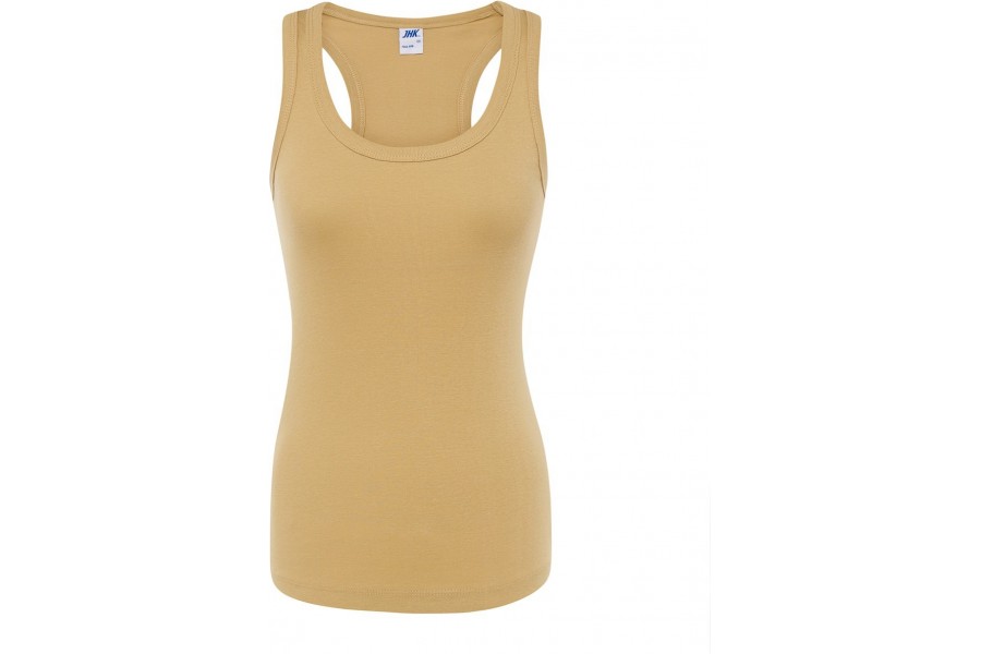 Koszulka Damska Aruba to podstawowy top na ramiączkach z plecami w stylu bokserki, lekko dopasowany, wykonany w 100% z bawełny gręplowanej o gramaturze 200 g/m². Usuwalna metka zapewnia wygodę użytkowania. Dostępna w 13 kolorach i rozmiarach od XS do XL.