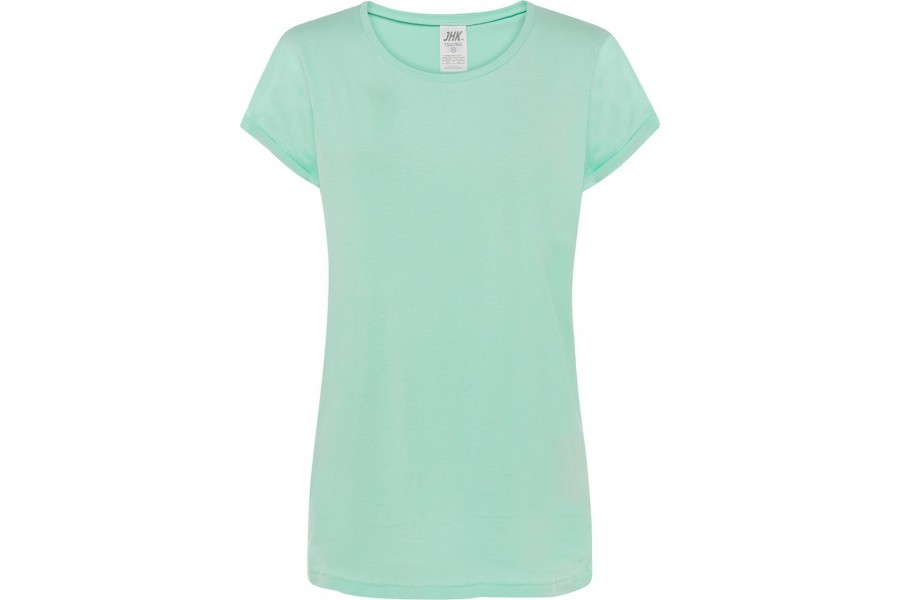 Koszulka Damska Tobago to lekki T-shirt z krótkim rękawem, wykonany z miękkiej bawełny typu single jersey o gramaturze 140 g/m². Posiada szeroki okrągły dekolt oraz podwinięte rękawy, co nadaje jej swobodnego, modnego charakteru. Idealna do codziennych stylizacji lub jako baza do personalizacji. Dostępna w 4 kolorach.