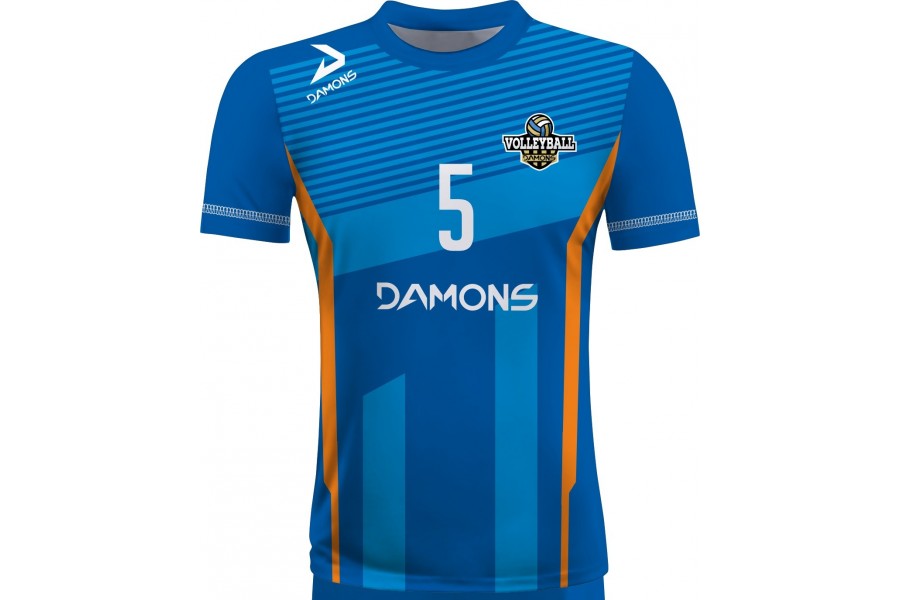 Zamów Koszulkę Siatkarską Omega 11 Senior Niebiesko-Pomarańczową z nadrukami i numeracją, a przygotujemy wizualizację dla Twojej drużyny!