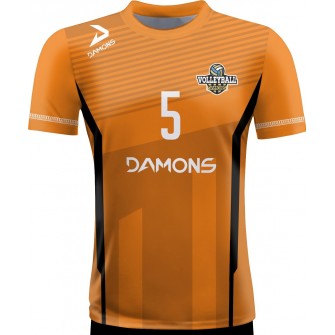 Zamów Koszulkę Siatkarską Omega 11 Senior Pomarańczowo-Czarną z nadrukami i numeracją, a przygotujemy wizualizację dla Twojej drużyny!