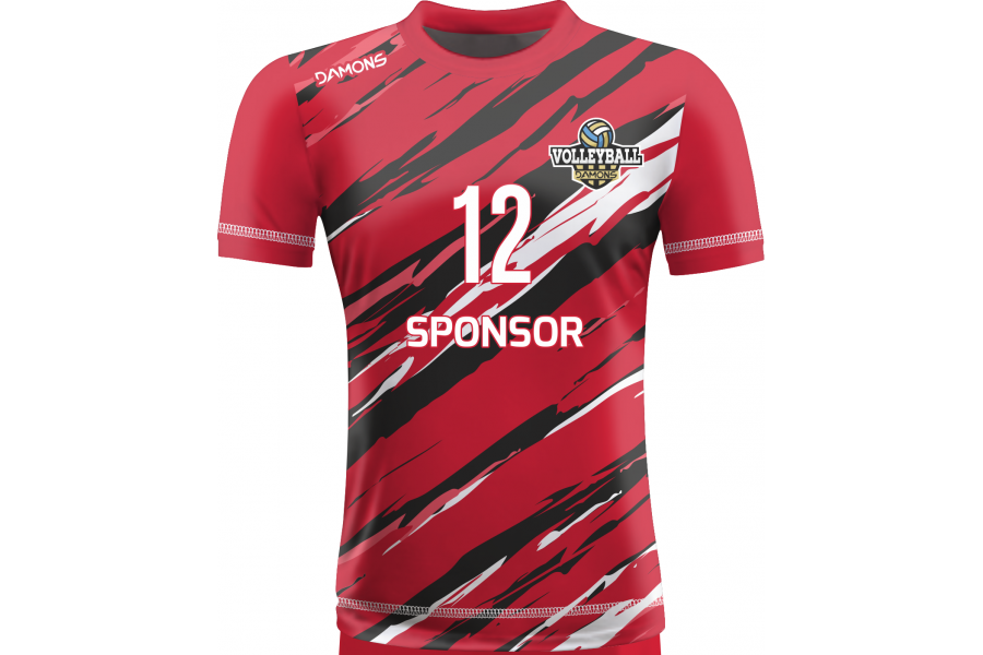 Zamów Koszulkę Siatkarską Omega 17 Czerwono-Czarno-Białą z nadrukami i numeracją, a przygotujemy wizualizację dla Twojej drużyny!