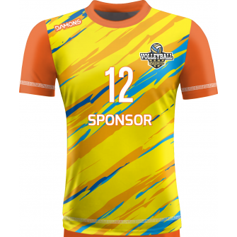 zobacz inne wzory: koszulka siatkarska omega 17 Żółto-pomarańczowo-niebieska