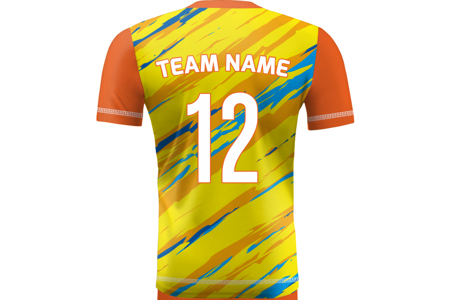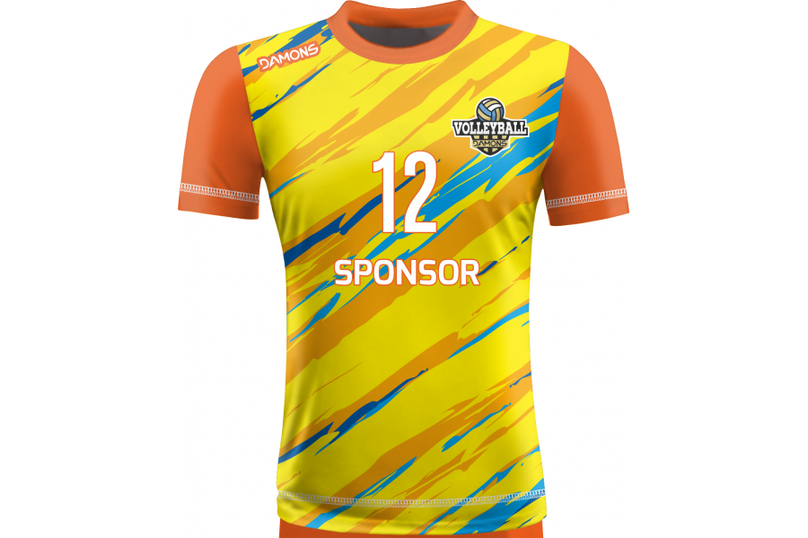 Zamów Koszulkę Siatkarską Omega 17 Żółto-Pomarańczowo-Niebieską z nadrukami i numeracją, a przygotujemy wizualizację dla Twojej drużyny!