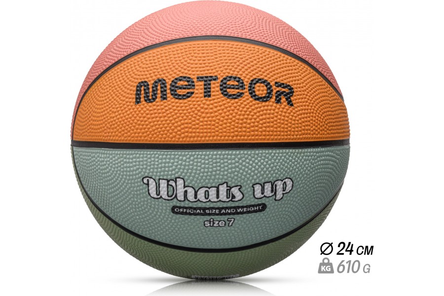 Piłka do koszykówki Meteor What's Up to nie tylko narzędzie do gry - to esencja pasji, energii i wytrzymałości. Idealna dla graczy na każdym poziomie, ta piłka została stworzona z myślą o wyjątkowej trwałości i wszechstronności, doskonale sprawdzając się zarówno na boiskach zewnętrznych, jak i podczas szkolnych treningów w hali.