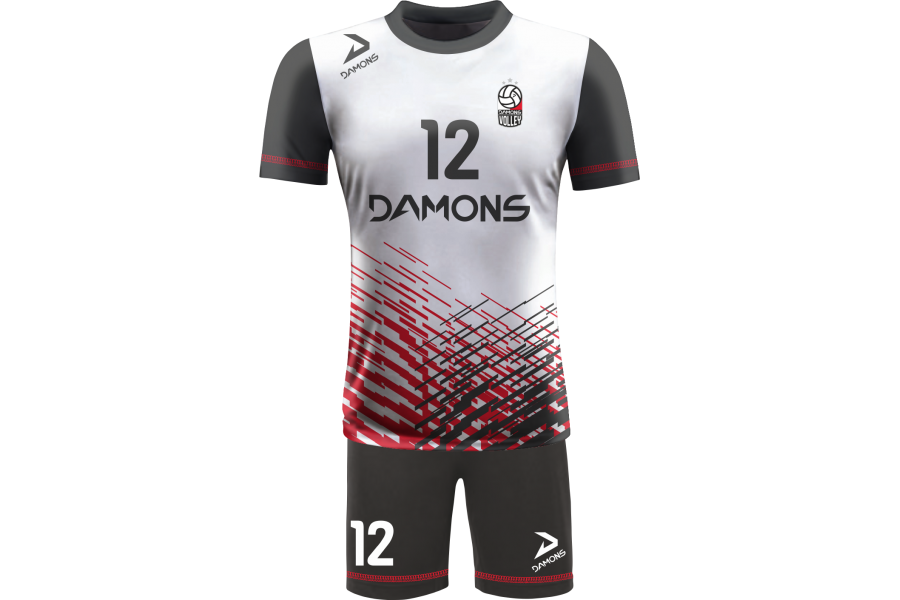 Zamów Strój Siatkarski Męski Omega 2 Biało-Czarny z nadrukami i numeracją, a przygotujemy wizualizację dla Twojej drużyny!