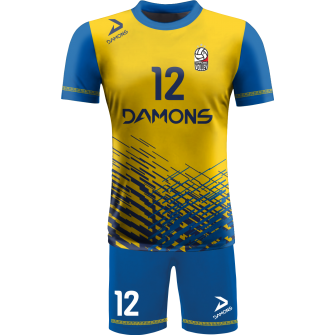 Zamów Strój Siatkarski Męski Omega 2 Żółto-Niebieski z nadrukami i numeracją, a przygotujemy wizualizację dla Twojej drużyny!