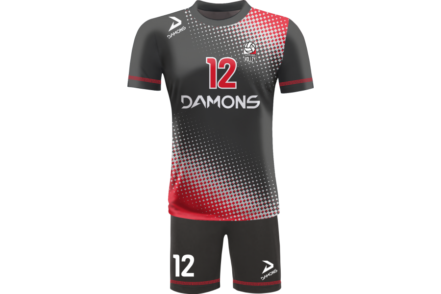 zobacz inne wzory: strój siatkarski męski omega 8 czarno-czerwony