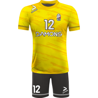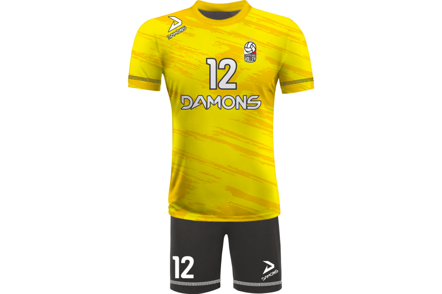 Zamów Strój Siatkarski Męski Omega 6 Żółto-Czarny z nadrukami i numeracją, a przygotujemy wizualizację dla Twojej drużyny!