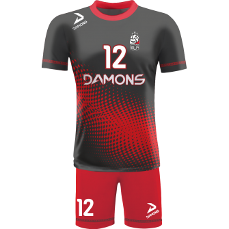 Zamów Strój Siatkarski Męski Omega 9 Czarno-Czerwony z nadrukami i numeracją, a przygotujemy wizualizację dla Twojej drużyny!