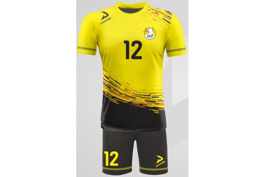 Żółto-czarna odsłona Omega 3 pracuje przede wszystkim na widoczność i mocny efekt boiskowy. Jasny żółty nadaje kompletowi energii oraz agresywności wizualnej, a czarne elementy spinają projekt i dodają mu bardziej zdecydowanego, profesjonalnego tonu. Taki wariant bardzo dobrze sprawdza się w drużynach, które chcą wyglądać odważnie, nowocześnie i wyraziście podczas meczu. Strój zachowuje pełną funkcjonalność halową dzięki elastycznej, oddychającej dzianinie, a sublimacja zapewnia trwałość kolorów, numerów i logotypów oraz swobodę personalizacji.