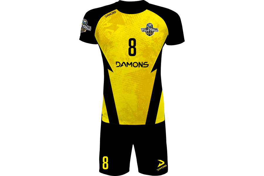 Zamów strój siatkarski męski Defender Pro P5 żółto-czarny i wybierz mocno widoczny, dynamiczny komplet meczowy dla swojej drużyny.