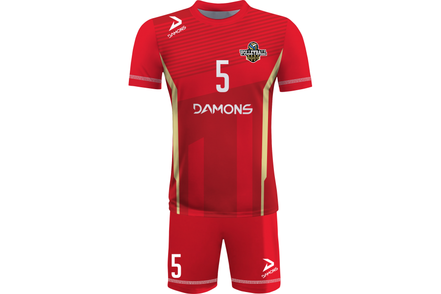 Zamów Strój Siatkarski Męski Omega 11 Czerwono-Żółty z nadrukami i numeracją, a przygotujemy wizualizację dla Twojej drużyny!