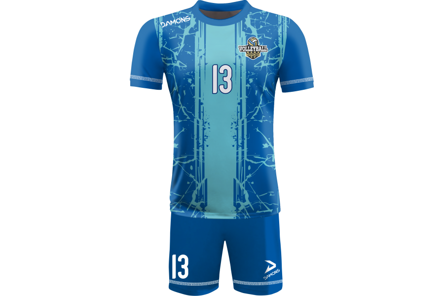 Zamów Strój Siatkarski Męski Omega 13 Granatowo-Błękitny z nadrukami i numeracją, a przygotujemy wizualizację dla Twojej drużyny!