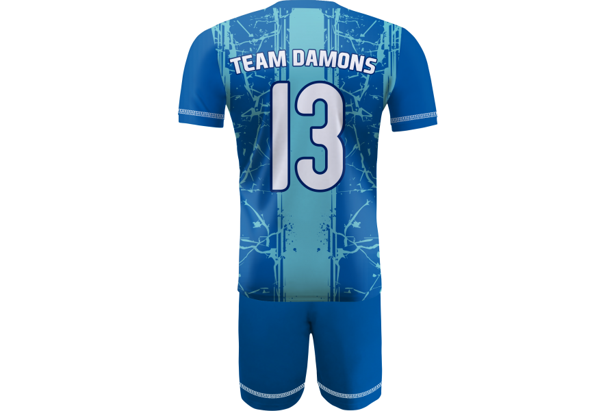 Granatowo-błękitny wariant Omega 13 opiera się na spokojniejszej, chłodnej estetyce, która dobrze buduje profesjonalny wizerunek drużyny bez potrzeby używania agresywnych kontrastów. Granat nadaje kompletowi stabilność i mocny sportowy fundament, natomiast błękitne przejście w górnej części rozjaśnia projekt oraz dodaje mu lekkości i nowoczesnego charakteru. Taki układ kolorów sprawia, że strój prezentuje się czytelnie, elegancko i bardzo dobrze wpisuje się w halowy charakter rozgrywek. Tonalne przejście wzmacnia głębię projektu, a techniczna dzianina wspiera komfort użytkowania podczas intensywnej gry. Elastyczność materiału, oddychalność i szybkie schnięcie idą tu w parze z sublimacją, która zapewnia trwałość nadruków oraz pełną personalizację kompletu pod potrzeby zespołu.