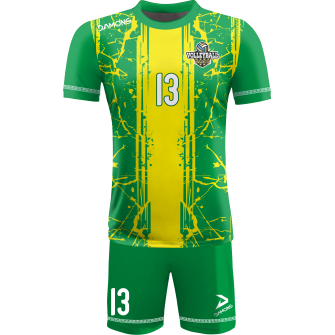 Zamów Strój Siatkarski Męski Omega 13 Zielono-Żółty z nadrukami i numeracją, a przygotujemy wizualizację dla Twojej drużyny!
