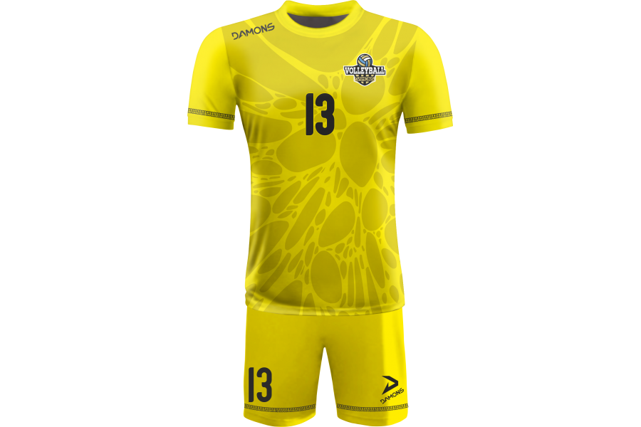 Zamów Strój Siatkarski Męski Omega 14 Żółty z nadrukami i numeracją, a przygotujemy wizualizację dla Twojej drużyny!