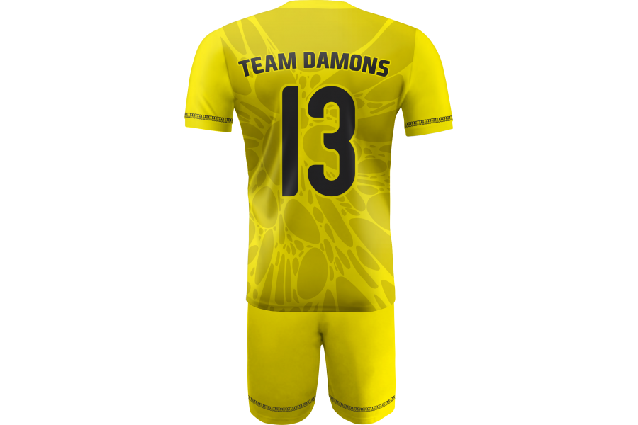 Żółty wariant Omega 14 został zbudowany na jasnej, bardzo wyrazistej kolorystyce, która od razu wzmacnia widoczność drużyny na boisku. Intensywna żółć nadaje kompletowi energię, świeżość i sportowy charakter, a subtelny wzór tonalny sprawia, że projekt nie jest płaski, tylko zyskuje głębię oraz bardziej techniczny odbiór. Taki układ dobrze sprawdza się w hali, ponieważ pomaga mocno zaznaczyć obecność zespołu i jednocześnie utrzymać czytelny, uporządkowany wygląd stroju meczowego. Elastyczna dzianina wspiera komfort użytkowania, oddychalność i szybkie schnięcie, a sublimacja zapewnia trwałość nadruków oraz pełną personalizację kompletu pod potrzeby drużyny.