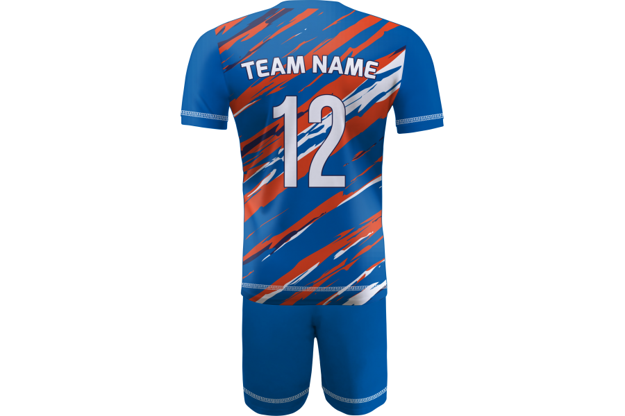 Najbardziej charakterystyczne w tym wariancie jest to, jak chłodny niebieski został przełamany ciepłym pomarańczem i rozjaśniony bielą, dzięki czemu cały komplet zyskuje bardzo żywy, sportowy i nowoczesny rytm. Niebieska baza nadaje projektowi świeżość oraz stabilność wizualną, pomarańczowe akcenty wprowadzają energię i podkreślają dynamikę grafiki, a białe elementy poprawiają czytelność całej sylwetki. Taki układ kolorów sprawia, że strój prezentuje się wyraziście i efektownie w ruchu, ale jednocześnie zachowuje dopracowany, profesjonalny odbiór charakterystyczny dla premium linii Omega. To komplet meczowy dla drużyn, które chcą wyglądać nowocześnie, pewnie i z wyraźnym charakterem na boisku. Techniczna dzianina wspiera komfort gry podczas intensywnych akcji, a sublimacja zapewnia trwałość nadruków i pełną personalizację zgodną z identyfikacją zespołu.