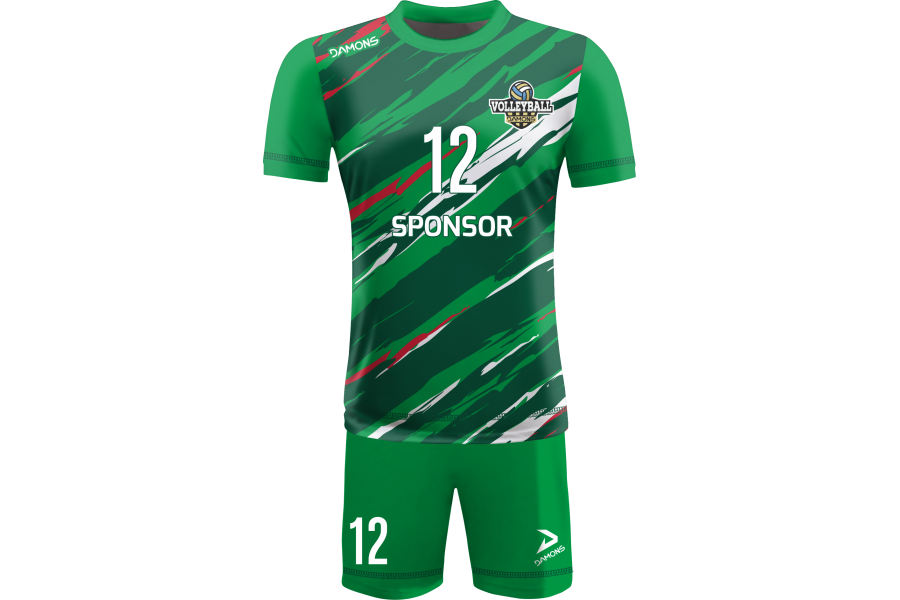 Zamów Strój Siatkarski Męski Omega 17 Zielono-Biało-Czerwony z nadrukami i numeracją, a przygotujemy wizualizację dla Twojej drużyny!
