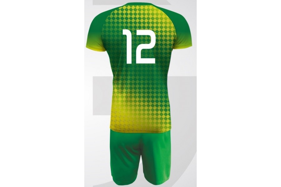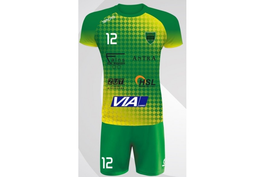 Wariant zielono-żółty w grafice P4 od razu wnosi na boisko świeżość, mocną widoczność i bardzo energetyczny odbiór całego kompletu. Zielona baza została tutaj przełamana żółtym pasem w środkowej części koszulki oraz jaśniejszymi akcentami w górnej strefie projektu, dzięki czemu strój wygląda dynamicznie, nowocześnie i bardzo dobrze prezentuje się w ruchu. To propozycja dla drużyn, które chcą budować żywy, aktywny wizerunek zespołu, ale jednocześnie zależy im na spójnym, praktycznym komplecie meczowym w bardziej przystępnej cenie. Techniczna dzianina zapewnia lekkość, elastyczność i oddychalność, a sublimacja sprawia, że projekt jest trwale zintegrowany z materiałem i może zostać dopasowany do identyfikacji klubu, szkoły, akademii lub drużyny amatorskiej.
