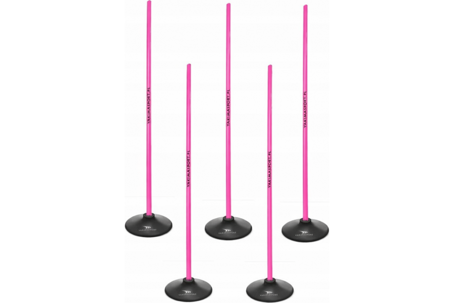 Zamów tyczki slalomowe 100 cm w kolorze różowym, zestaw 5 sztuk, w Hurtowni Sportowej MANOM i zbuduj tor do zwinności oraz slalomu.